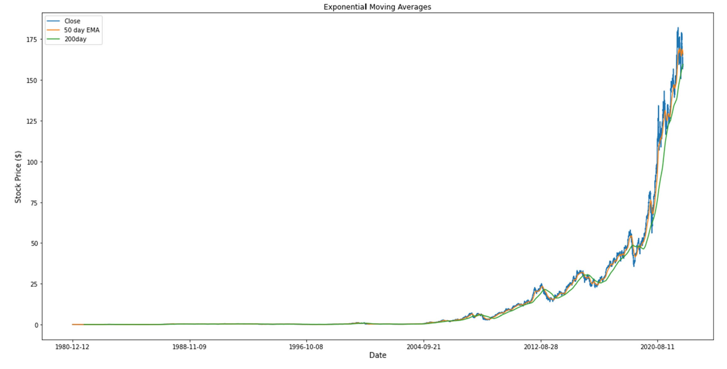 50-day EMA showed impressive accuracy, with only 4.88% error for Apple stock