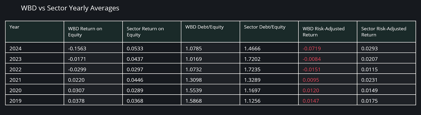 Debt/Equity Ratio: WBD's actually less leveraged than the sector average. In normal times, this would be applause-worthy. But when you're underperforming, it raises the question: are they playing it too safe?